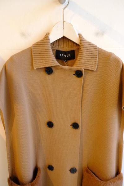 FAVEUR (ファブール) ミラノリブ フェイクファーポケット付ジレコート