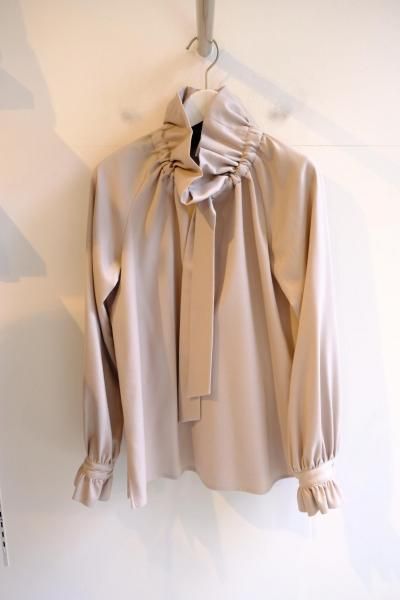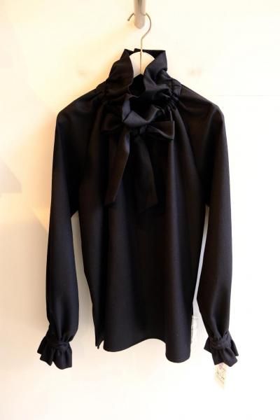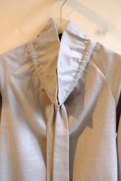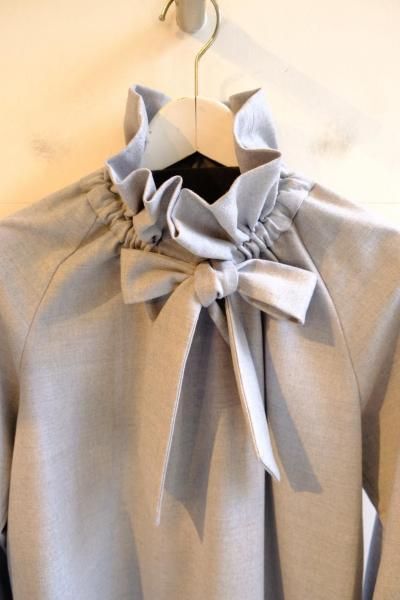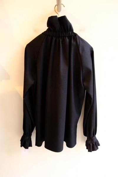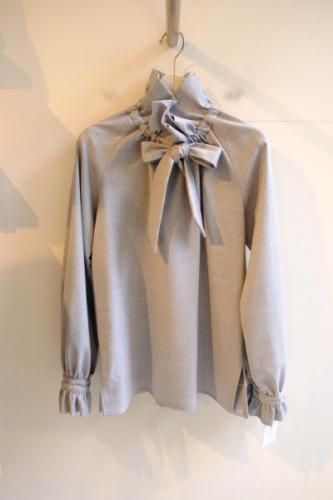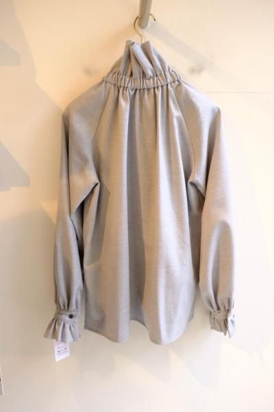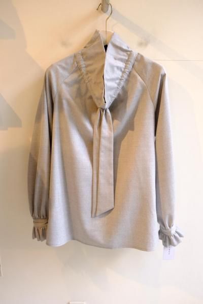《シマークオリジナル》 ウールフラノ生地使用 フリルネックブラウス