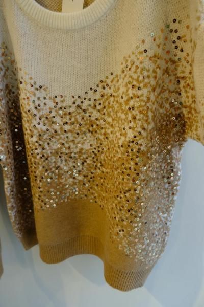 FLY GIRL (フライガール) スパンコール使い丸首ニット