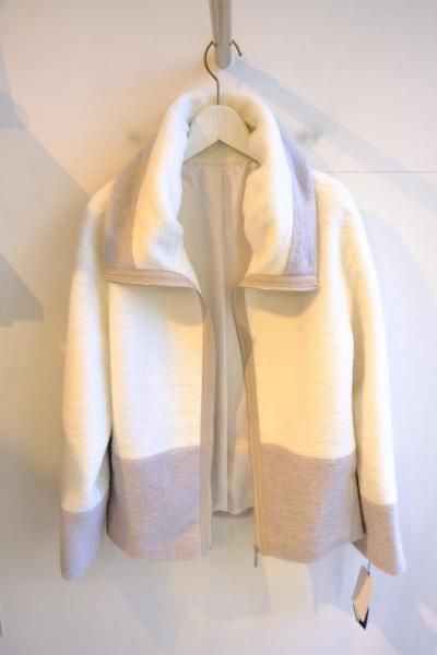 ウール混配色ジップアップショートコート